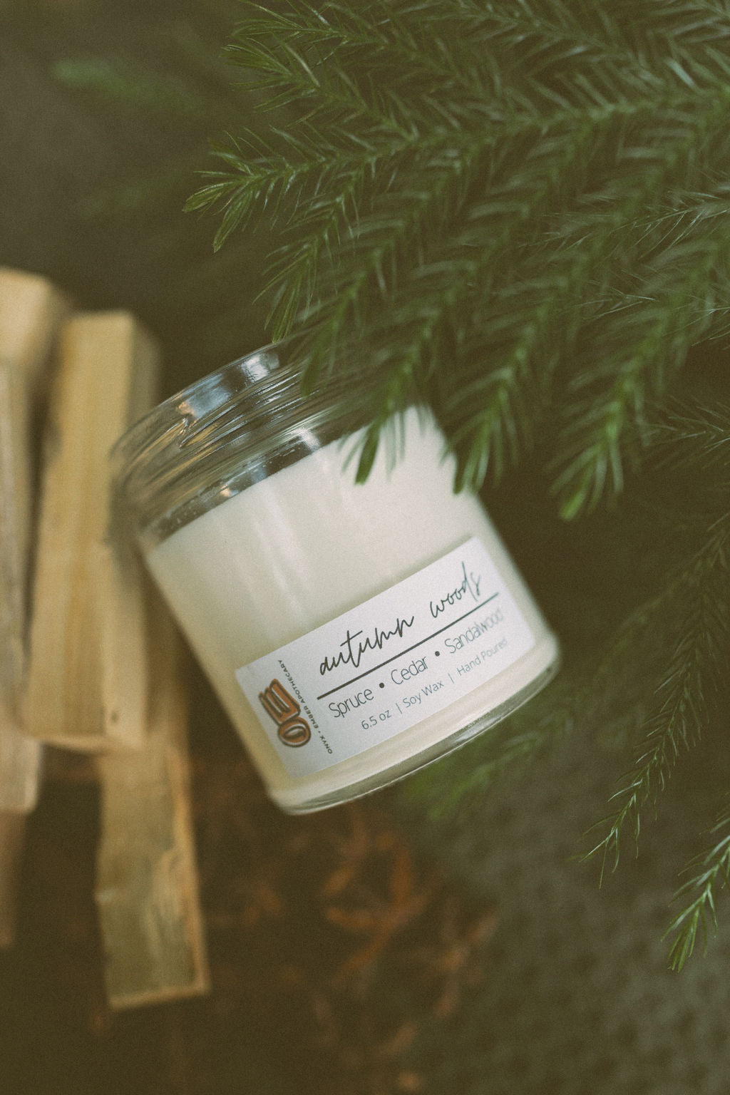 Remember that perfect fall hike? It’s tranquilly quiet, and leaves are floating down all around you. Well, we’ve managed to capture that in Autumn Woods. Top notes of spruce and leather meld with a base of sandalwood. More complex than a traditional spruce or fir, this fragrance has a bright, punchy character that truly captures the spirit of the season.