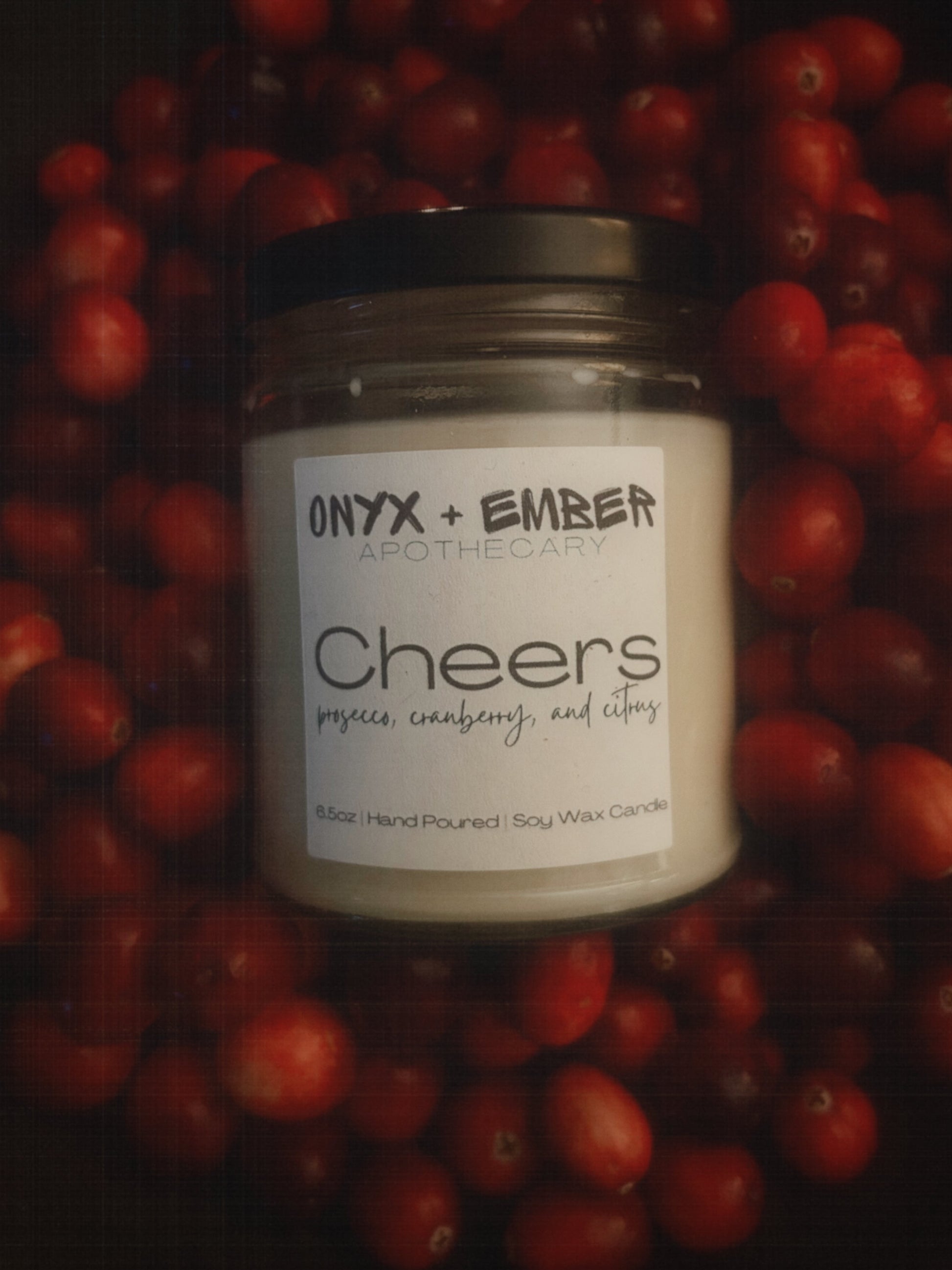 This festive fragrance brings joyful holiday party vibes to life. Bright and uplifting, our Cheers candle adds an effervescent pop of color to your holiday scent collection. Top notes of citrus and cranberry add a cheerful, tart twist to sparkling Prosecco middle notes. At the base, praline offers a touch of sweetness while comforting musk notes convey a cozy ambiance.