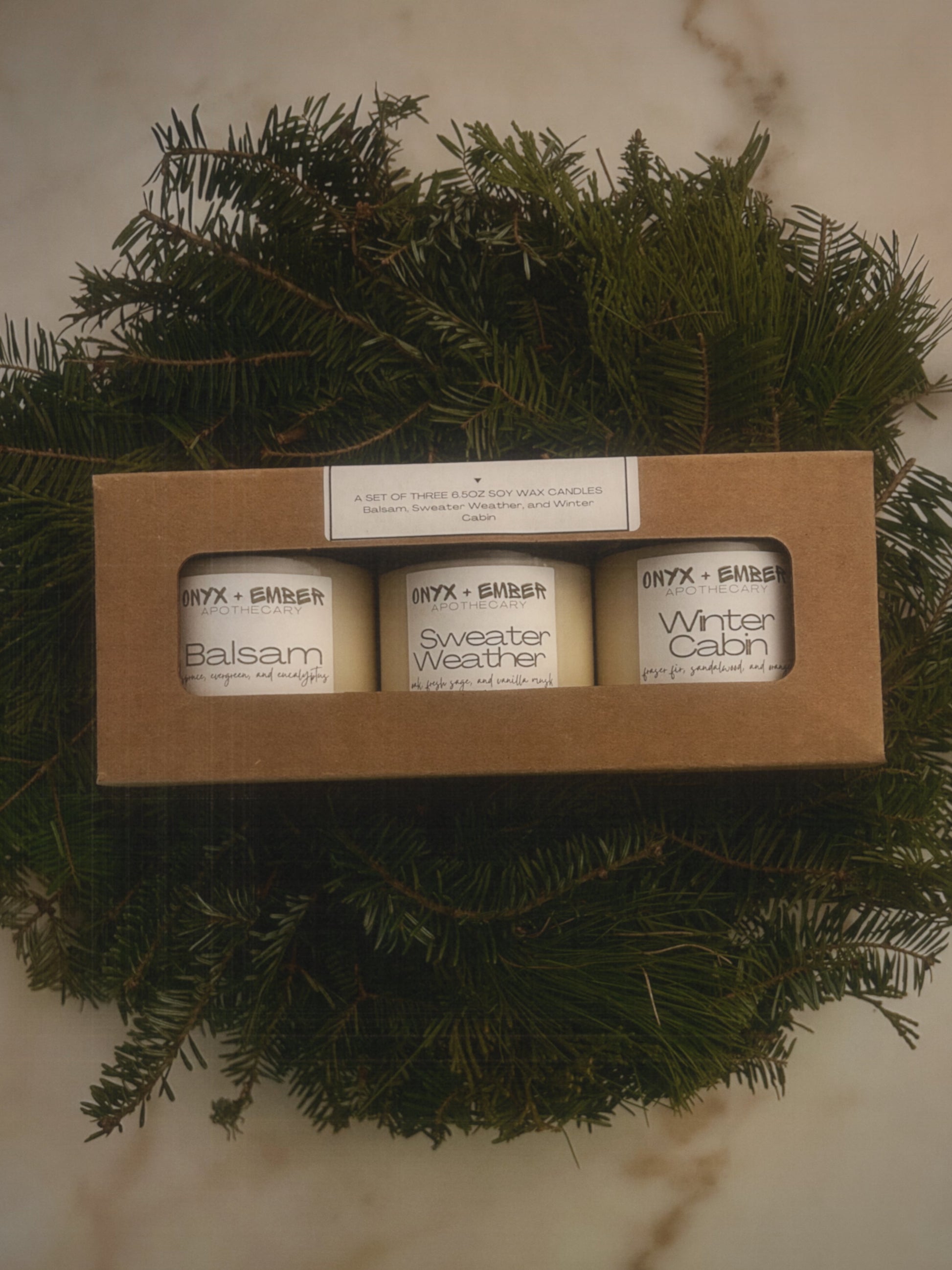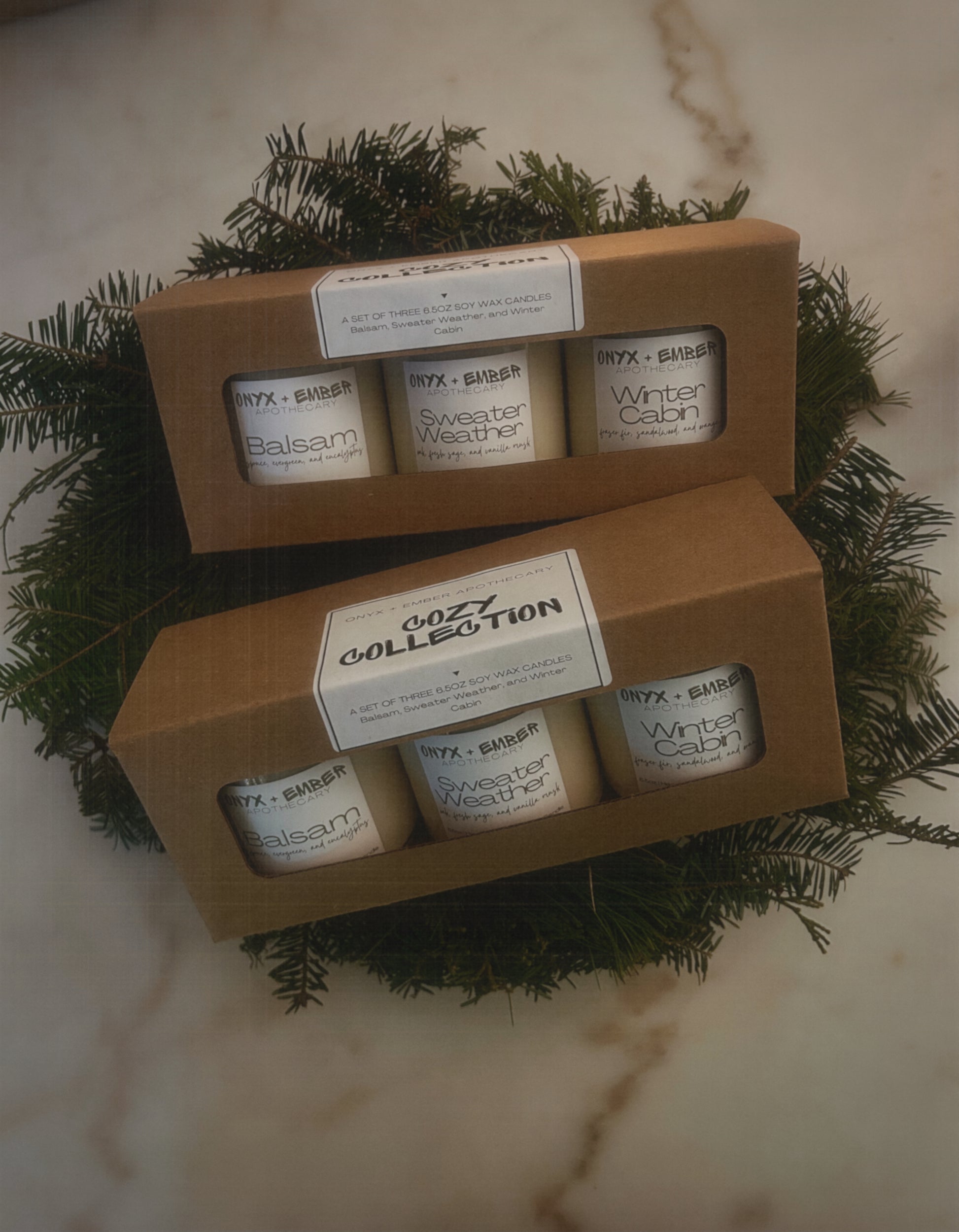 Our coziest collection yet with 3 6.5oz jars at a discounted price!